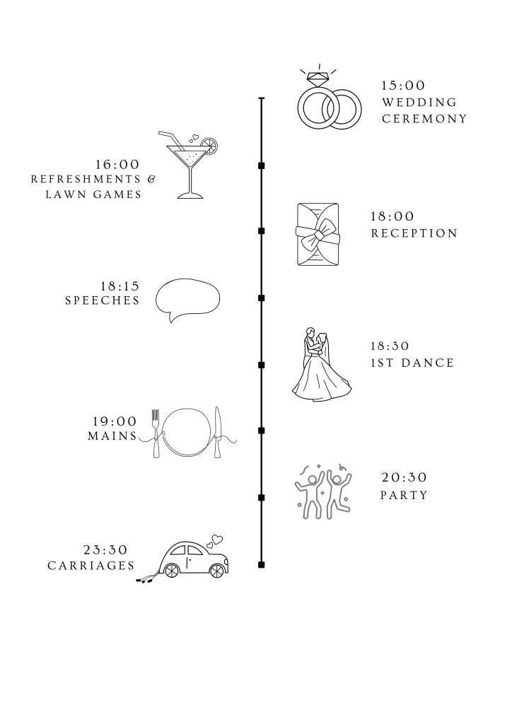 Om die dag intiem te hou, word metgeselle slegs toegelaat soos aangedui op julle uitnodiging.